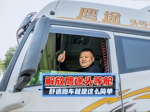 來(lái)自徐州的凌海軍跑車已經(jīng)差不多20年了,之前自卸和牽引車都開過,也給別人開過車。去年凌海軍買了一輛解放鷹途頭等艙跑徐州到云貴兩地的專線,這也是徐州地區(qū)的第一輛解放鷹途。因?yàn)槠拮右哺粔K跑車,所以舒適性是凌海軍選擇這輛車的主要原因之一。